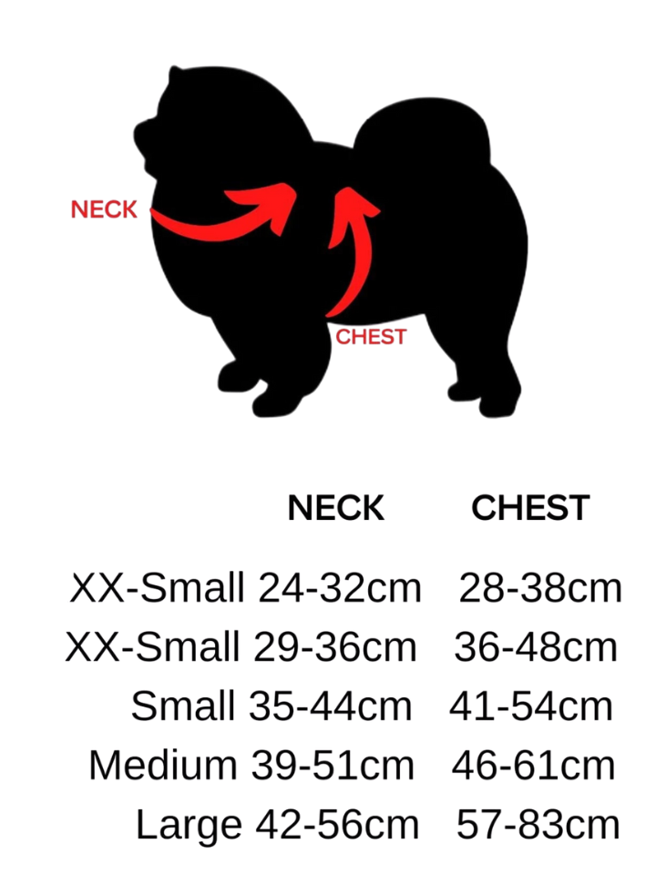 This Harness is made from a custom printed neoprene with breathable lining, along with a fully adjustable polyester webbing on the chest & neck.